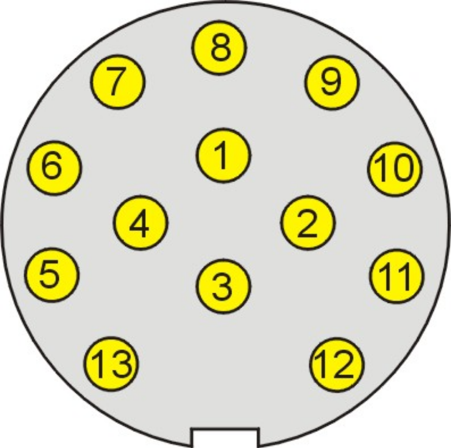 13pólová zásuvka rozšiřuje funkcionalitu o samostatné napájecí větve a řadu dalších signálů. Níže je přehled běžného přiřazení pinů (označení se může lišit podle výrobce, proto vždy kontrolujte dokumentaci).