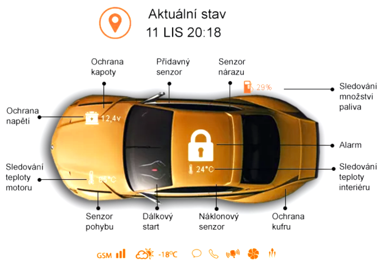 Posuňte ovládání svého vozidla na novou úroveň, pomocí rychlého a stabilního 4G připojení s maximálním výkonem v jakýchkoli podmínkách. Získejte neustálý přehled o stavu a poloze vozidla bez dodatečných poplatků a ovládejte vybrané funkce či nezávislé vytápění například i z druhé strany planety. Díky nejmodernějším algoritmům a senzorům náklonu, pohybu a otřesu se nemusíte bát ani odtažení, ťukanců na parkovišti či krádeže kol. Ovládání systému zvládnete hravě pomocí